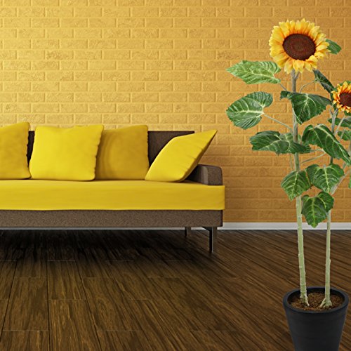 Breeze Point Large 63" Lifelike Potted Artificial Sunflower Plant in Realistic Textured Stem Decorative Fiberglass Pot with Sphagnum Moss, Yellow (P00022S)