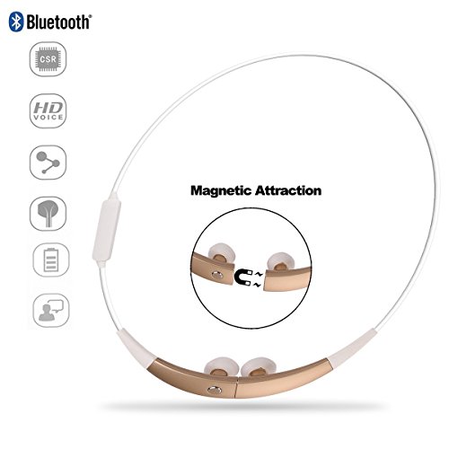 Sport Bluetooth Earphone, Costech Magnetic Attraction CSR Wireless Stereo Headphone Neckband Necklace Style Running Headset with Microphone for iPhone Samsung LG Smartphone (Gold) B01EVUHQ1A