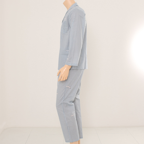 포근함을 느께게 해주는 칼라감과 심플한 스트라이프 나 염에 간간히 프린트된 강아지 나염이 귀엽게 느껴지는 파자마로 젊고 심플한 분위기의 커플용 파자마로 제안 해 드립니다
