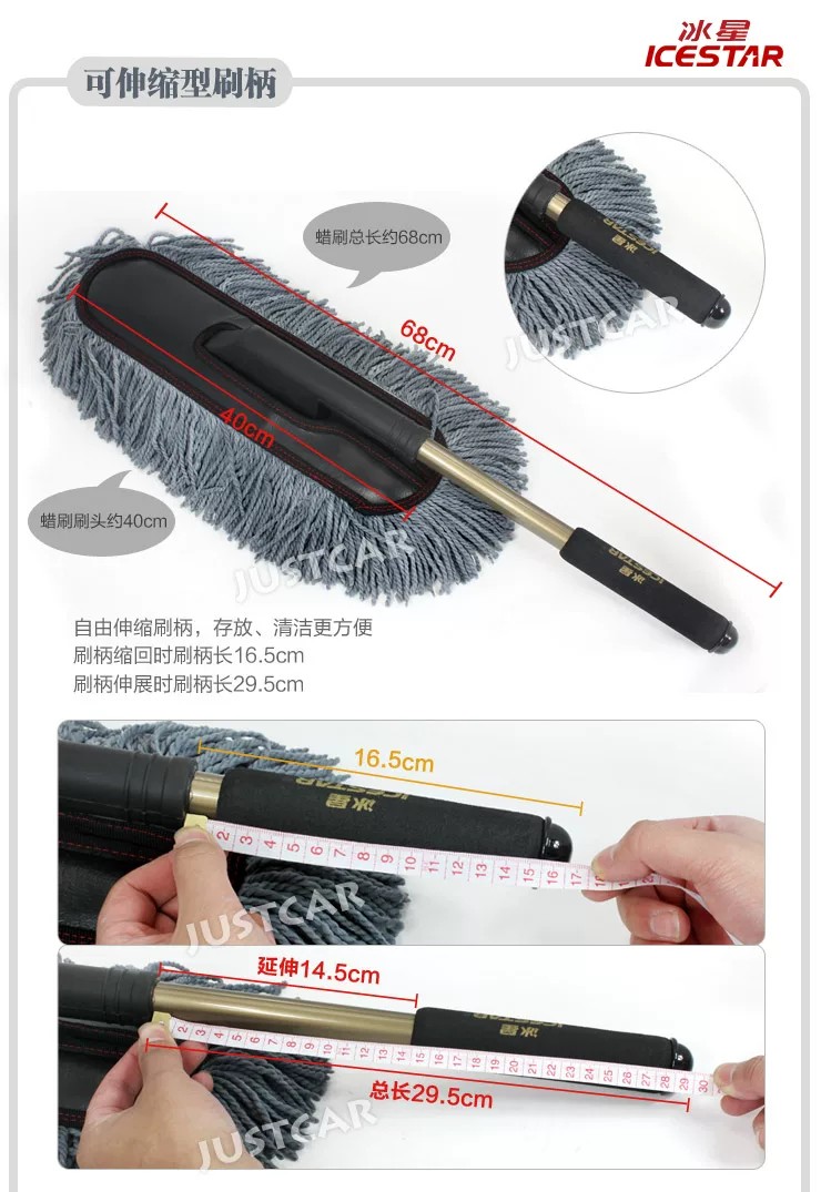 The waxing mop past long time after use, brush bristles on the wax will gradually reduce it requires "duster wax" to supplement the bristles on the wax to keep the wax drag effect!