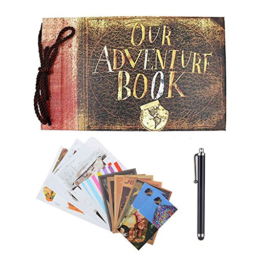 Green-state Our Adventure Book,Up Movie DIY Anniversary Scrapbook With 1 Stylus Pen,Corner stickers, Postcards, and More Photo Album Holds Up To 160 Pictures (11.6x7.5 inch)