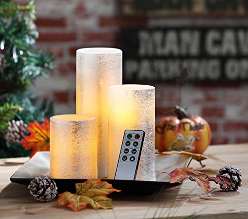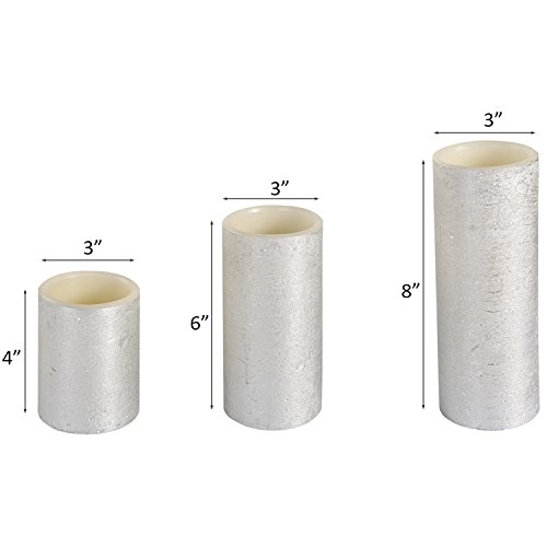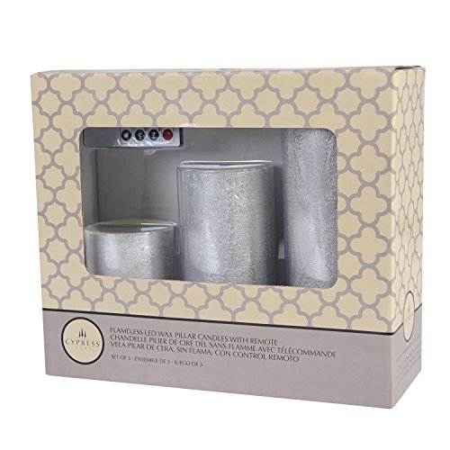 Flameless Candles LED Battery Powered Pillar Tealight Real Scented Wax with Remote by CYPRESS, Pack of 3, Silver