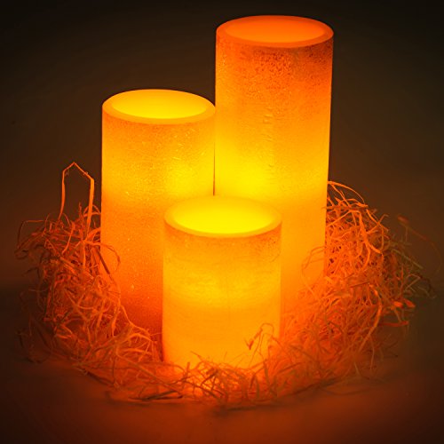 - SPECIFICATON: 3 different sized candles come gift wrapped. Diameter 3" x 4"Length , 3"x 6"Length, 3"x 8"Length. Each candle is thoroughly and rigorously tested and requires 3 AA batteries (batteries are NOT included)