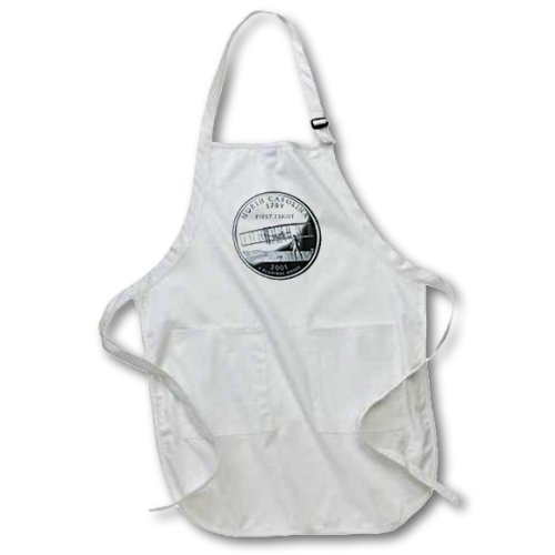 3dRose apr_56938_1 North Carolina Collectors Quarter Full Length Apron with Pouch Pockets, 22 by 30-Inch, White, with Pockets