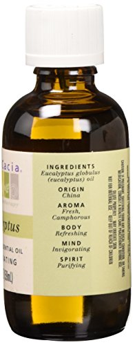 Aura Cacia Essential Oil Eucalyptus Pure. Eucalyptus essential oil brings clarifying and uplifting benefits to a wide variety of applications. Has a forestry, medicinal aroma. Great for body oils, massage oils, bath oils, salves, cleaning sprays, cleaning wipes, room and outdoors mists, diffusions.Feature