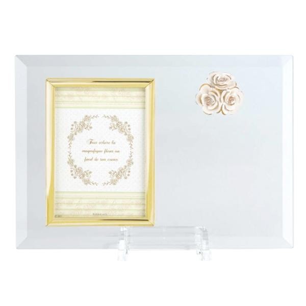 美しいガラスの輝きに繊細な磁器の小花が色を添えます。入学・卒業記念、結婚御祝い、出産・成人・還暦御祝い、退職御祝い、各種表彰などの幅広い贈り物のシーンにぜひ!!サンドブラストやシルクプリントなどでの名入れ加工ができる、専用ガラスフレームです。 |