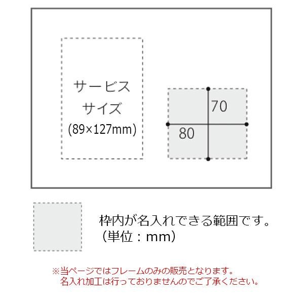 | 仕様 | 内寸:W89×H127mm 窓寸:W83×H117mm 対応写真サイズ:サービスサイズ(89×127mm) 裏板のカラー:ホワイト 設置方法:卓上用 |