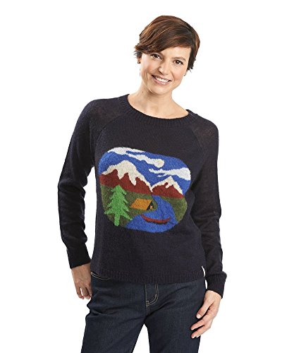 Celebrate the winter season with a whimsical motif crew sweater in double-knit jacquard mohair. The charming designs are cute and colorful-this lightweight and easy to wear sweater lets you flaunt your less serious side.