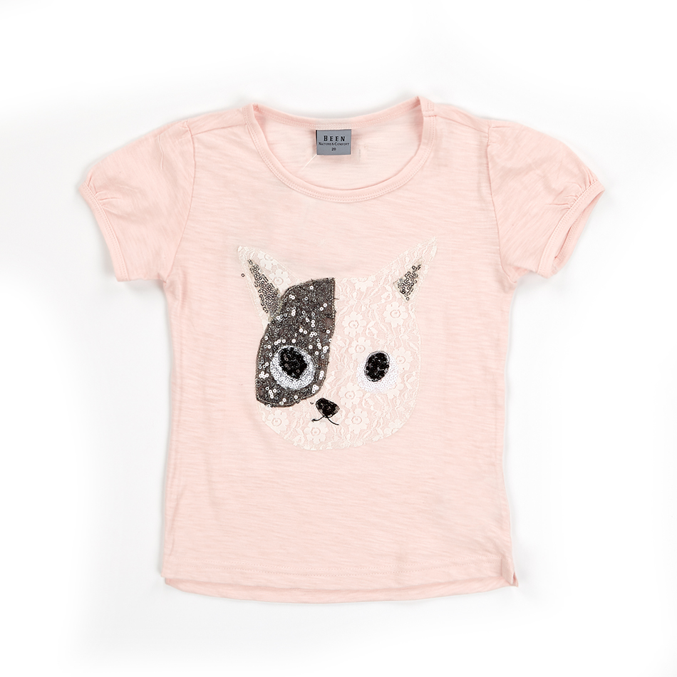 고양이 패치가 포인트인 사랑스런 핑크색 티셔츠 입니다.