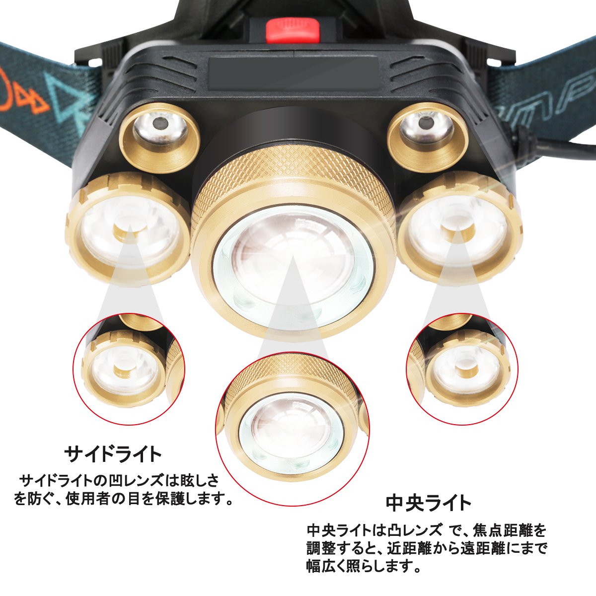 The center light is a convex lens, and when the focal length is adjusted, the beam is adjustable from narrow to wide (zoom function).