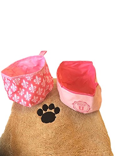 BONUS: 2 extra free blue or pink dog travel food bowls. Make selection.