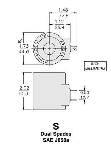 HY 6351012 - Hydra Force Coil 2 Spade 12 Volt DC Fits 10, 12, 16, 38 and 58 series Hydraforce Stems (5/8" Hole)