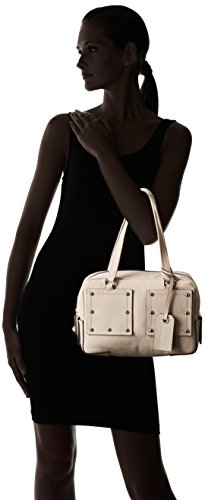 A chic satchel shape with stud detailing, double straps and top zip closure.
