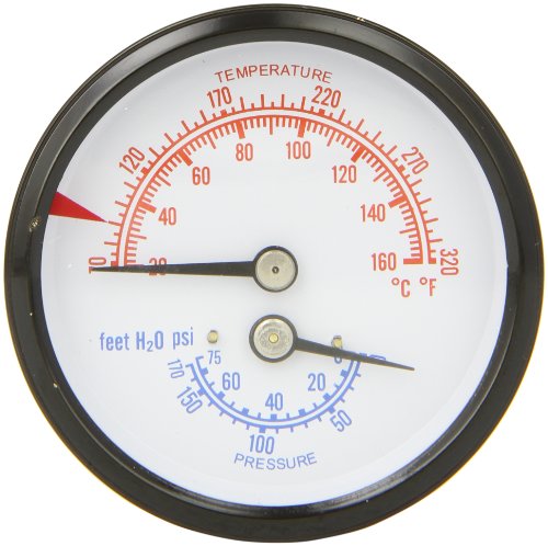 PIC Gauge TRI-RC-254R3.63-D Commercial Tridicators with Black Steel Case, Bronze Internals, Plastic Lens with Red Indicator, 2-1/2" Dial Size, 1/4" Male NPT Connection Size, Stem Length 3.63 inches, 0/75 psi Range
