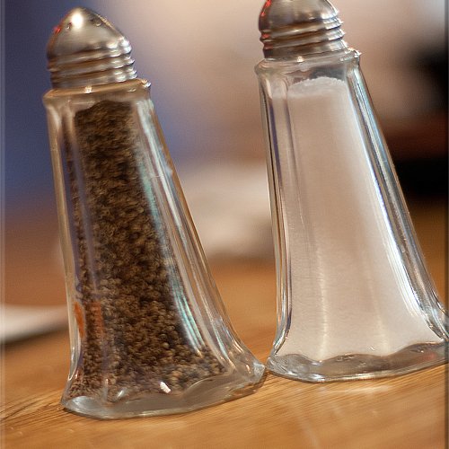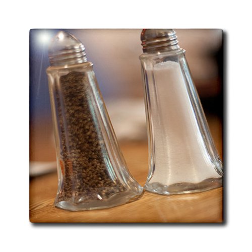 3dRose ct_52098_5 A Salt and Pepper Shaker at a Restaurant Shot Close Up and at An Angle on The Table Glass Tile, 4-Inch