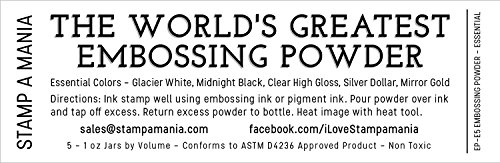 Large 1 OZ Jars - World's Greatest Embossing Powder by Stamp A Mania - Set of 5 Essential Colors - Black White Gold Clear Silver - for Rubber Stamping and Handwriting Calligraphy