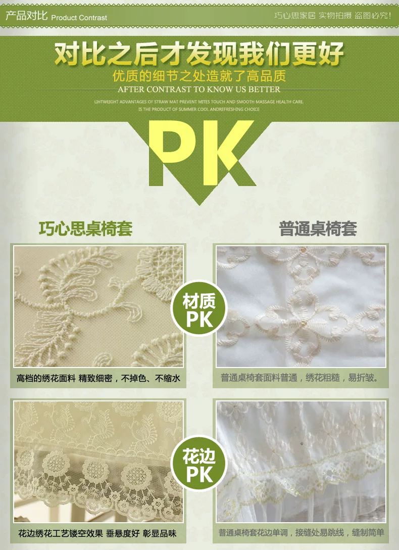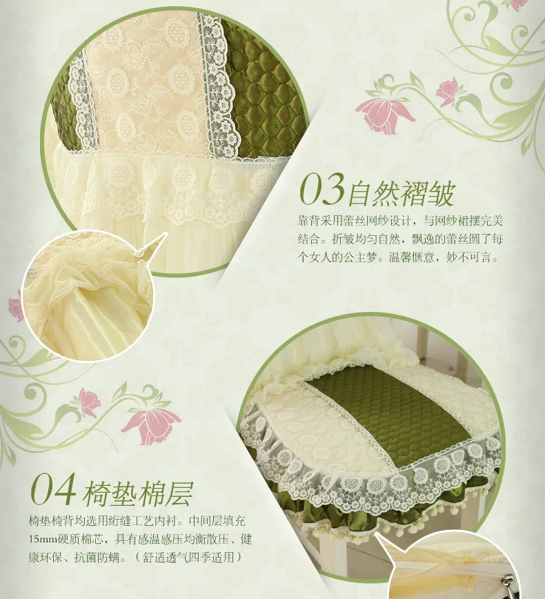 High-end lace fabrics, sophisticated computer embroidery, AB version with solid design, more refreshing atmosphere. Full quilted backrest cushion technology, with a long time with no distortion, one machine can wash the multiple advantages. Beautiful and noble unusual!