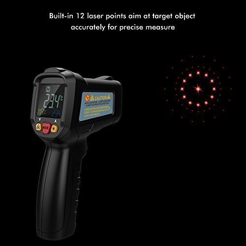 Enhanced Accuracy: Adjustable emissivity (0.10~1.00) for various materials, and built in 12 laser points surrounding a circle accurately aim at objects to offer precise measurement at a greater safe distance