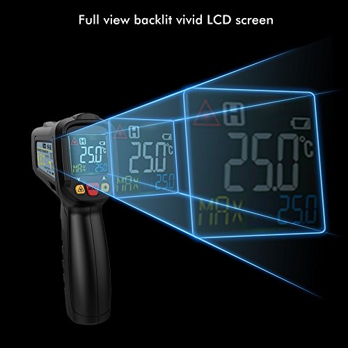 Full View Color LCD Backlit Display: Its Large color LCD screen makes temperature reading easily in any viewing angle, and backlit function enhances its visibility when used in dark lit areas