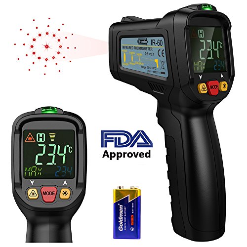 Dr.meter Non-Contact Digital Laser IR Infrared Thermometer Temperature Gun -58℉ - 1022℉ for Kitchen Cooking BBQ Automotive Industrial,Accuracy Reading HD Backlit LCD Display,FDA Approved,IR-60