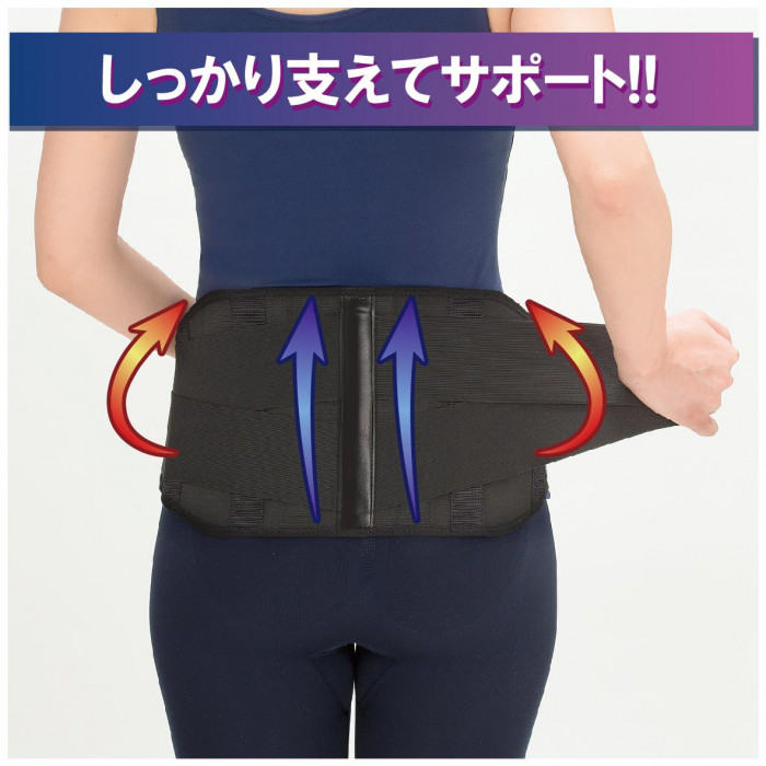 | メッシュタイプで通気性バツグンの腰部固定帯。 |