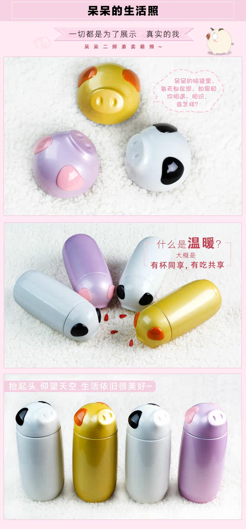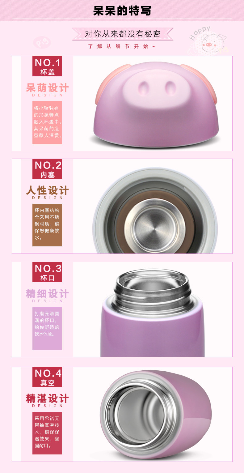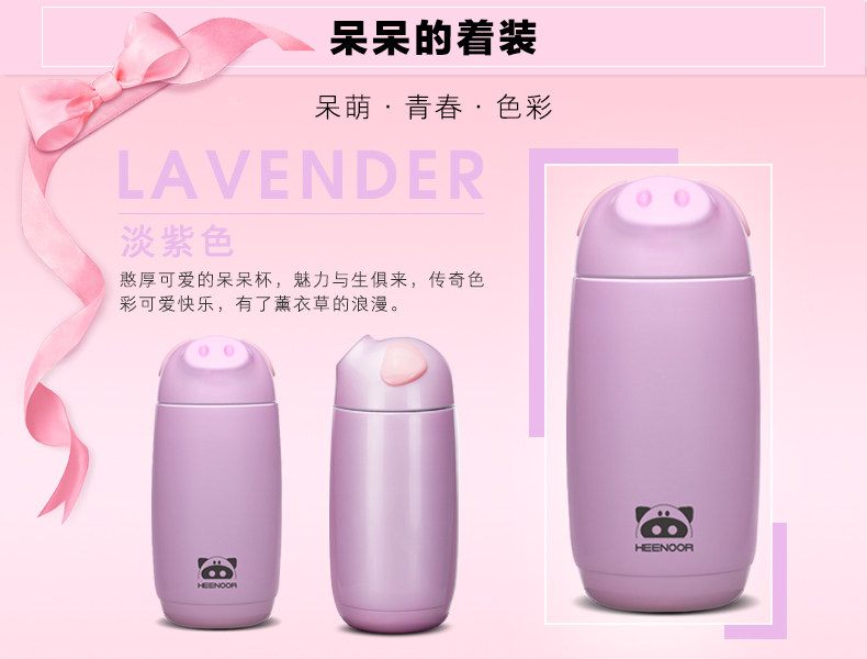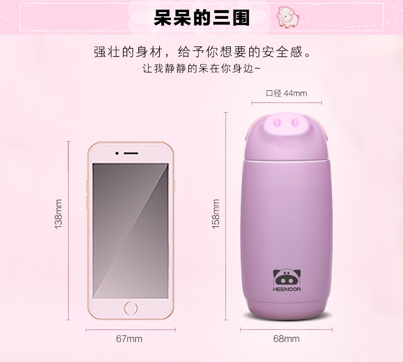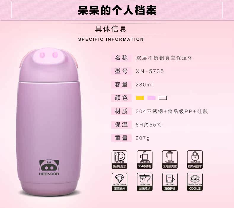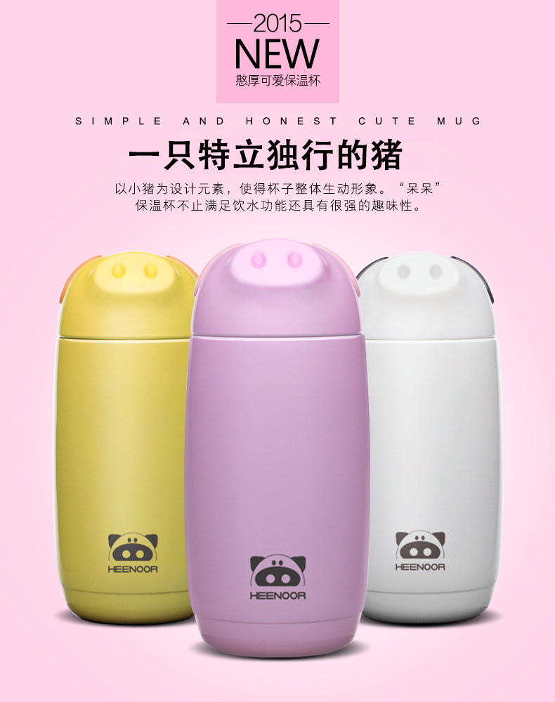 希诺真空小猪保温杯 便携女士高档不锈钢茶杯 儿童学生可爱水杯子
