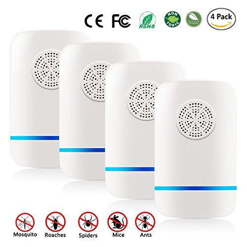 Ultrasonic Pest Repeller - Set of 4 Zitrades Electronic Plug Pest Repellent for Insects - Mice, Ants, Rats, Bugs, Fleas, Cockroaches, Mosquitoes and Spiders