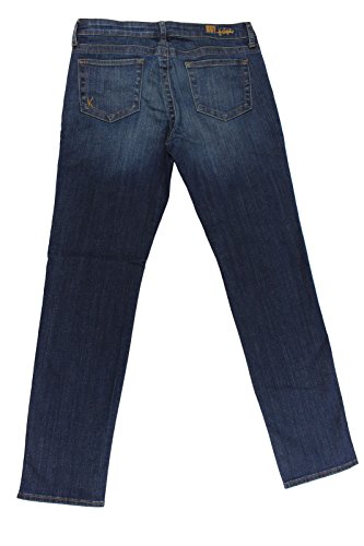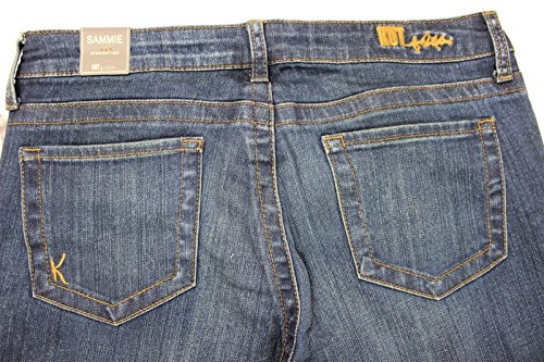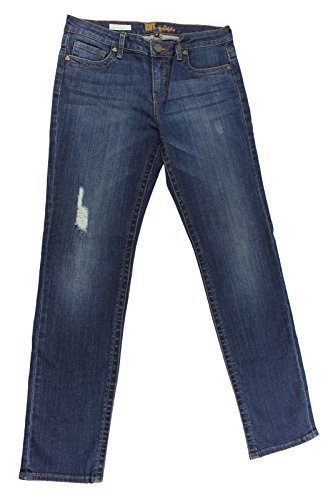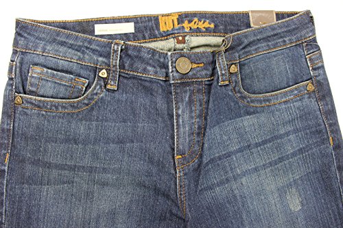 This blue straight leg jeans from KUT from the Kloth is crafted in a breathable pure cotton and is designed with straight faded legs, slight whiskering at thigh, distressed detail at font, traditional five pockets, V-shape back yoke and embroidered brand logo at the waistbandFeature