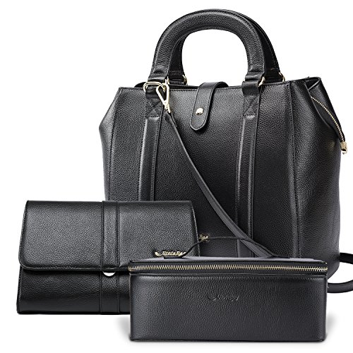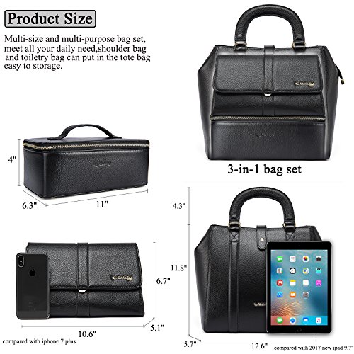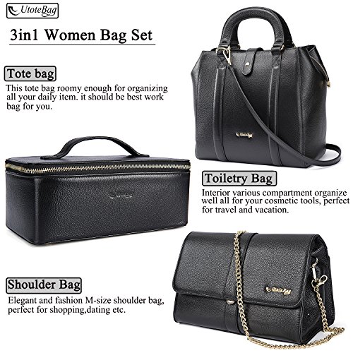 UtoteBag 3 Pcs Women Bag Set, Genuine Leather Tote Top Handle Bag / Shoulder Bag/ Toiletry Bag Cosmetic Case