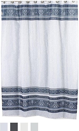 Carnation Home Fashions Fleur 70-Inch-by-72-Inch Fabric Shower Curtain, Silver