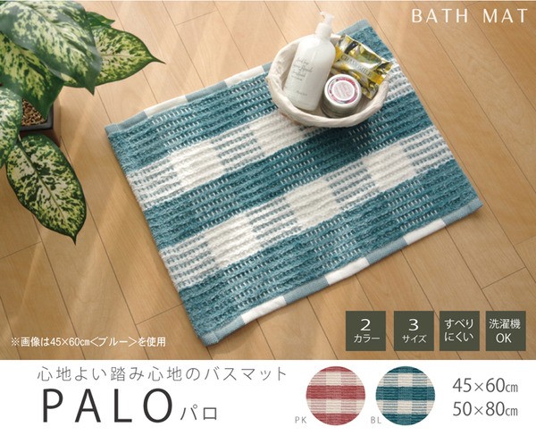 【商品名】チェック柄 バスマット 『パロ』 ピンク 約50×80cm