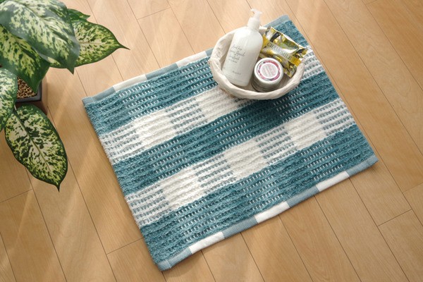 おちついたチェック柄のバスマットです。織り方で凹凸感をつけた商品です。吸水性に優れており、裏面には滑りにくいホットメルトを使用しています。汚れた際はご家庭の洗濯機で洗えるためお手入れも簡単です(洗濯時にはネットを使用してください)