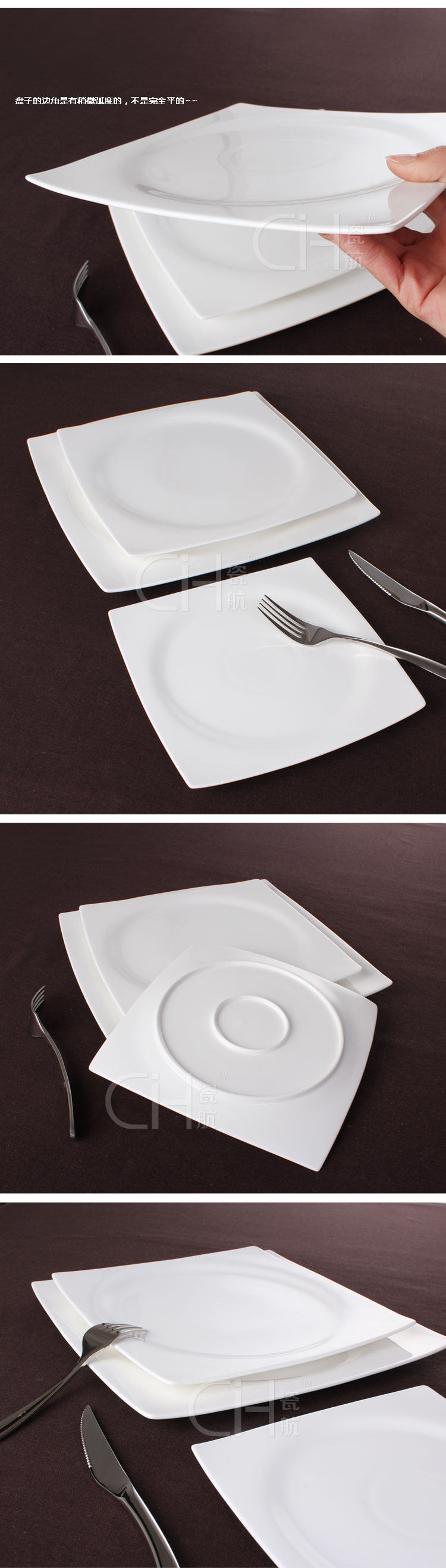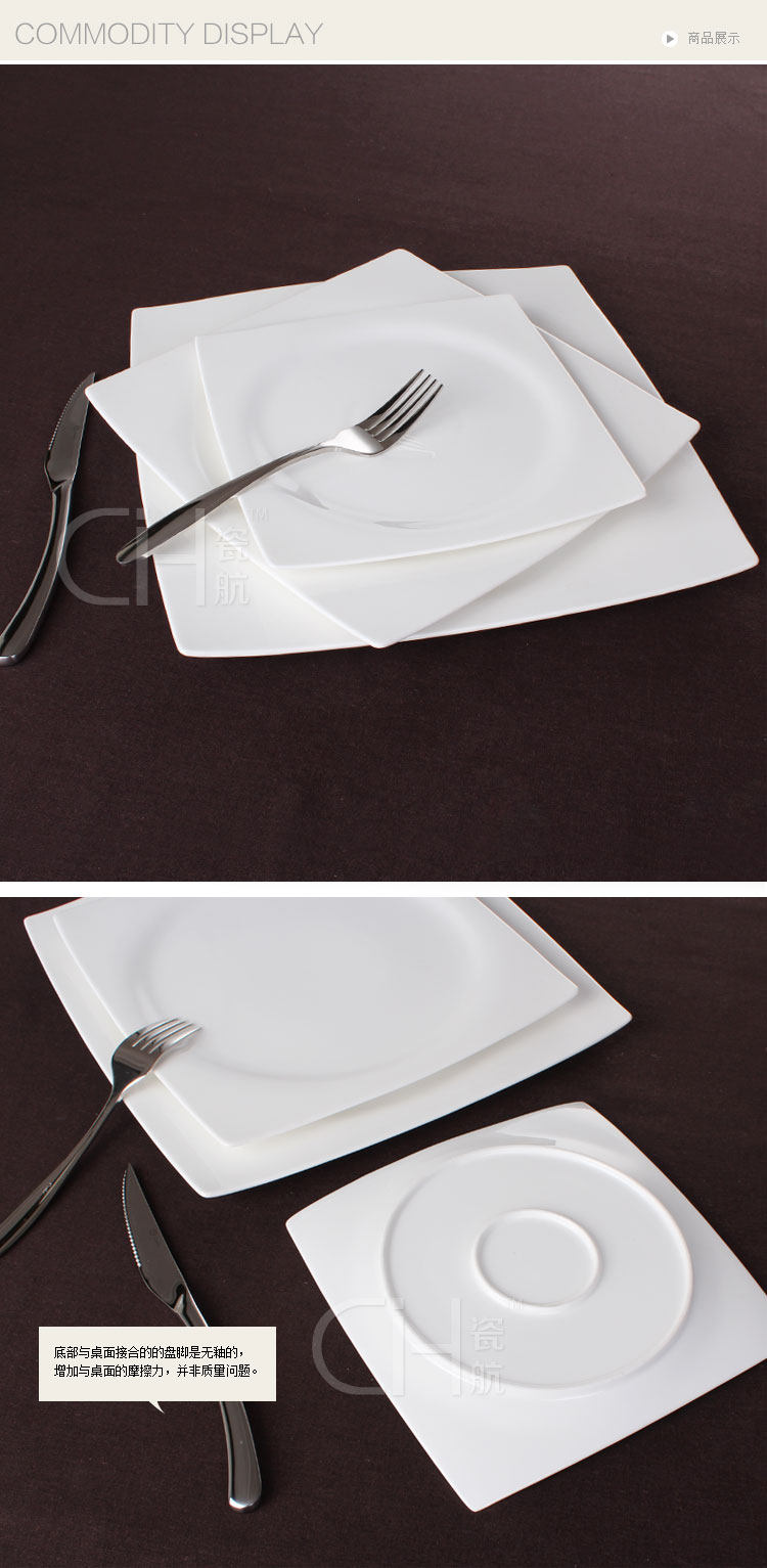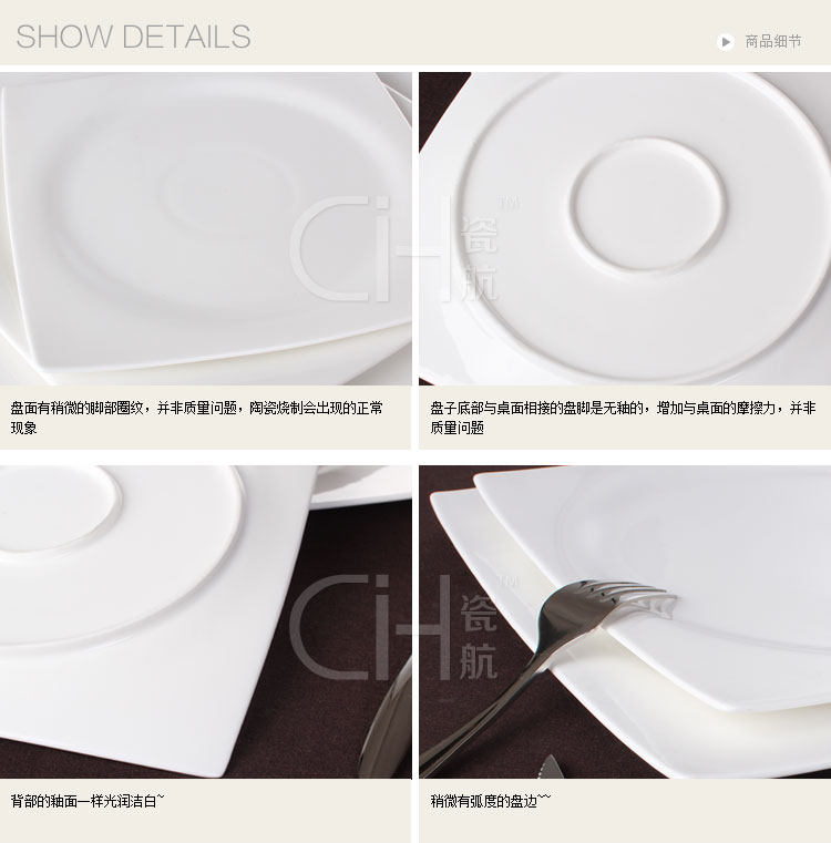 瓷航内圆外方浅盘骨瓷盘子方形盘陶瓷牛排盘西餐盘水果摆盘纯白
