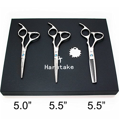 Harutake Professional Hair Cutting Scissors Shears Barber Thinning 5.0 5.5 Hidden Tension Screw Ergonomic Bent Down Thumb Ring Japanese 440c Stainless...