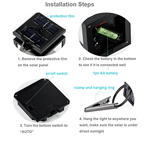 Attention: 1.As the charging effect of the solar panel is depend on the sunlight, the LED light time is affected by weather, seasons, places, etc.
