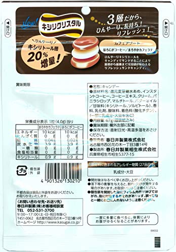 原材料:還元麦芽糖水あめ、インスタントコーヒー、コーヒーエキス、クリーム、バニラシロップ、マルチトール、バターオイル/甘味料(キシリトール、ソルビトール)、香料、乳化剤、酸味料、着色料(酸化チタン)、(一部に乳成分・大豆を含む)