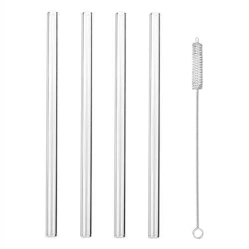 -. Title : Hiware Glass Straws 10 in x 10mm Handmade Bent, Clear, Set of 4, With Free Cleaning Brush, Smoothie Drinking Straws, Long Reusable Straws