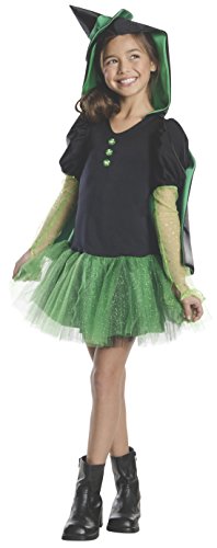 -. Binding : Toy -. Brand : Rubie's -. ClothingSize : Large,Medium,Small -. Color : Green -. Department : unisex-child -. Feature : Offered in Glinda, Lion and Dorothy designs - create a great group look / Wizard of Oz costumes and accessories from Rubie's are officially licensed by Turner Entertainment / Rubie's brings fun to dress-up with costumes and accessories kids play with all year long / Child large best fits children 10 to 12 years old, up to 60 Inch tall -. Label : Rubies - Domestic -. Manufacturer : Rubies - Domestic -. Model : 610153_L-Parent -. MPN : 610153 -. PackageQuantity : 1 -. PartNumber : 610153 -. ProductGroup : Toy -. ProductTypeName : CHILDRENS_COSTUME -. Publisher : Rubies - Domestic -. Size : Large,Medium,Small -. Studio : Rubies - Domestic -. Title : Rubies Wizard of Oz Wicked Witch of The West Hoodie Dress Costume -. Warranty : No Warranty