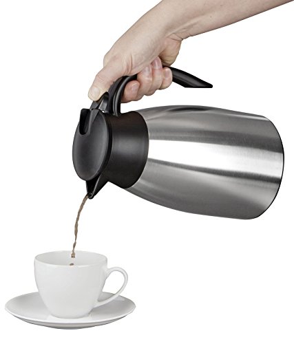 Isosteel Tableline VA-9350K Vacuum Pot 68fl. oz 18/8 Brushed Stainless Steel with Quickstop Pouring System for One Hand Use The double-walled 18/8 stainless steel vacuum pot has a bellied shape and a brushed outer finish. Thanks to the Quickstop pouring system and the insulating plastic handle pouring with just one hand is easily done. Approx. 68 oz coffee, tea or cold beverages will maintain temperature for several hours. Pre-heating or cooling with hot or cold water will increase the insulation.