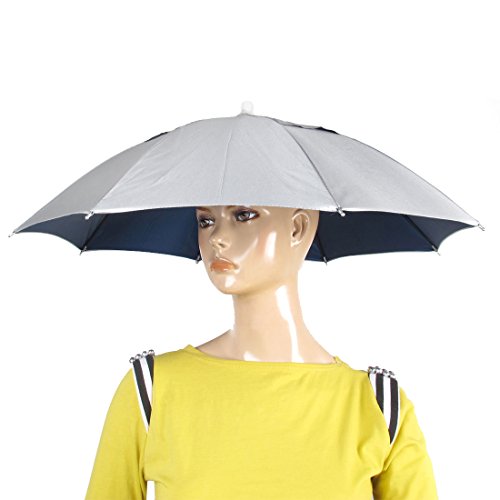 -. Feature : Product Name : Umbrella Hat;Material : Polyester, Metal, Plastic / Fit for Head Girth : 53- 59/20.9"- 23.2";Unfolded Diameter (Approx.) : 63cm / 24.8" / Folded Length (Approx.) : 15cm / 5.9";Color : Silver Tone, Dark Blue, Black, White / Weight : 130g / Package Content : 1 x Umbrella Hat