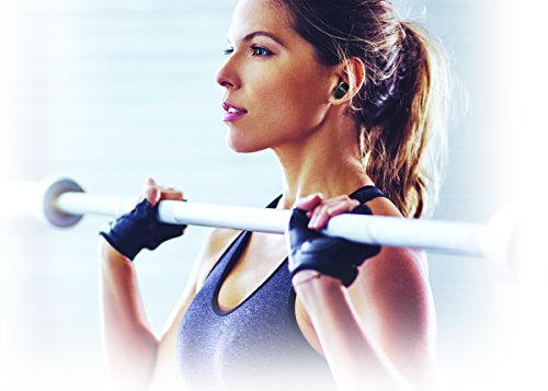 -. Feature : Enjoy music wirelessly from your smartphone or tablet / Hands-free calling with built-in microphone / Up to 3.5 hours of playtime from the rechargeable battery / Water resistant, lightweight fully portable design that fits wherever you go / Ergonomic ear tips and fins in 3 sizes for a customized, secure fit