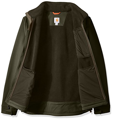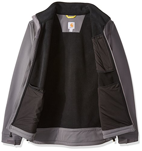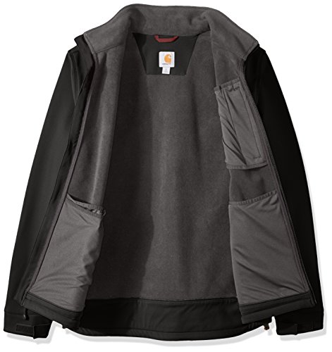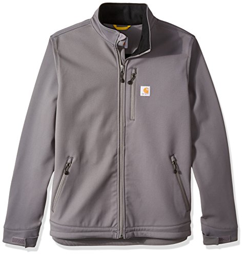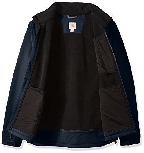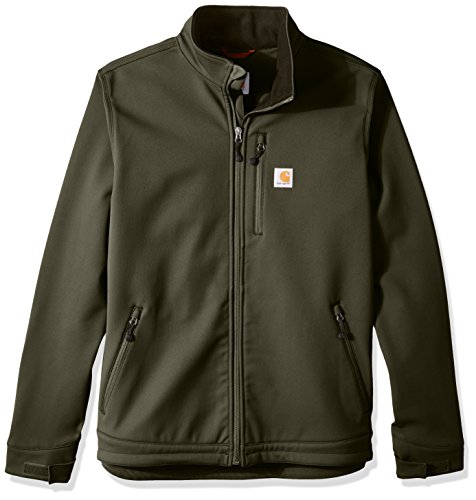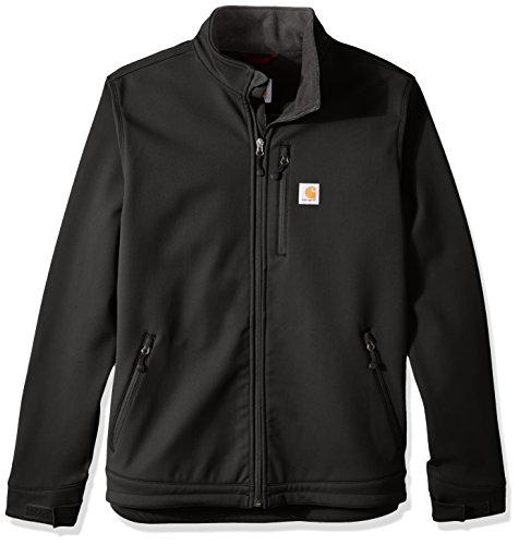 Studio : Carhartt Sportswear - Mens Publisher : Carhartt Sportswear - Mens Binding : Apparel Product Description Wind resistant and breathable, this extremely durable soft-shell jacket stretches every which way you do. It's made for all-day comfort. Our jacket is also treated with rain defender durable water-repellent finish so that water slides off. Made from 13.9-ounce, 90 percent nylon/10 percent spandex with 100 percent backing and offers the rain defender durable water-repellent finish, wind fighter technology that helps tame the wind, rugged flex technology for ease of movement, a mock-neck collar, center-front zipper with chin protector, left-chest pocket, two lower-front pockets with zipper closures, large interior document pocket, hook-and-loop adjustable cuffs, adjustable draw cord bottom hem, drop tail for added coverage and triple-stitched main seams for durability. 0