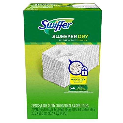 -. Title : Swiffer Sweeper Dry Sweeping Pad Refills, Hardwood Floor Mop Cleaner Cloth Refill, Unscented, 64 Count