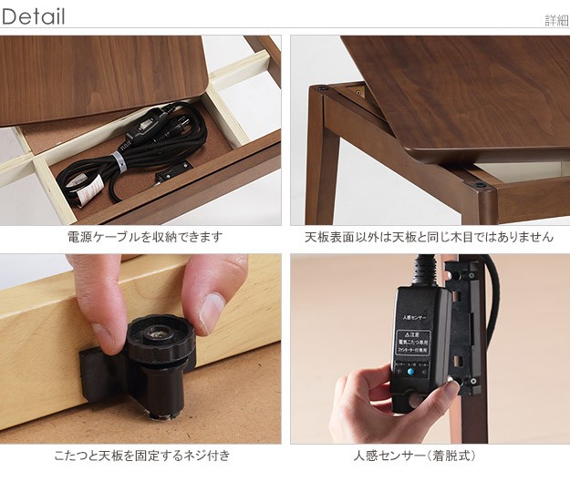 天板:天然木化粧繊維板(ブラウン/ウォールナット・ナチュラル/楢)