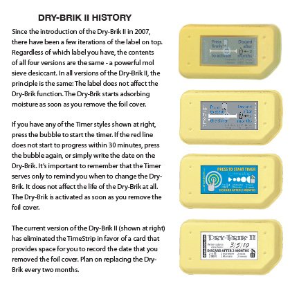 -. Binding : Health and Beauty -. IsAdultProduct : 0 -. Label : Dry and Store -. Manufacturer : Dry and Store -. ProductGroup : Health and Beauty -. ProductTypeName : HEALTH_PERSONAL_CARE -. Publisher : Dry and Store -. Studio : Dry and Store -. Title : Dry Brik II Desiccant Blocks 12-Pack