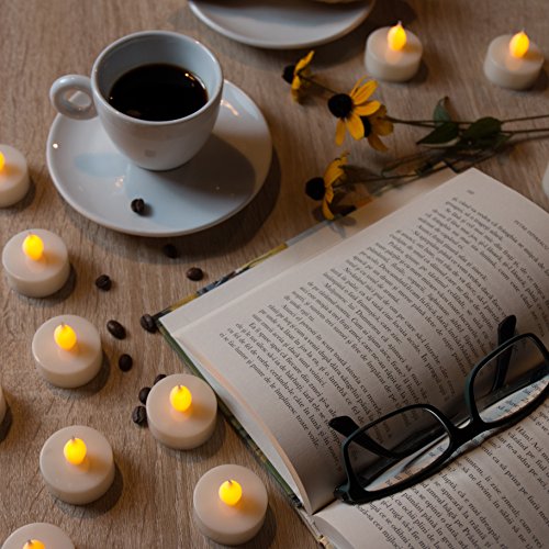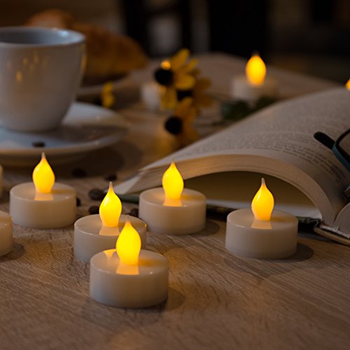NICE RELAXING GLOW FOR ONE HAPPY CANDLE NIGHT ; We spent a lot of time and efforts to bring you the best and cutest flameless tea lights you’ll ever try! These battery operated tea lights provide flameless illumination courtesy of a realistic wick design that mimics the authentic flicker and glow of traditional tea candles, adding a pleasant feeling of warmth and peacefulness to any space.