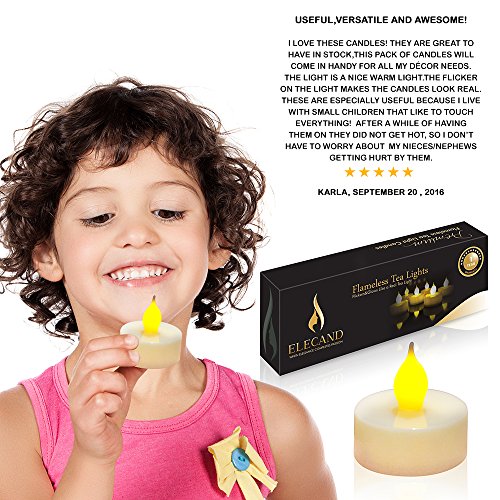 Premium Flameless Tea Lights-Long Lasting Battery Operated LED Tealights with Warm Light and Realistic Flickering Effect-ELECANDs Flameless Led Tealight Candles are the Perfect Gift Idea (12 pack)