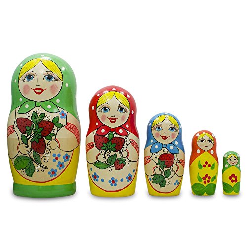 -. Title : 6.75" Set of 5 Strawberry Green Dress Matryoshka Russian Nesting Dolls
