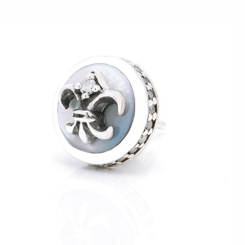 -. Title : シルバーピアス オニキス シェル フルールドリス( fleur-de-lis)メンズ レディース ジルコニア ピアス イヤリング 片耳用 925 Silver Onyx & Shell CZ Single Earring TESV-0199