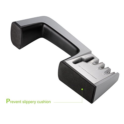 ★Both Knives and Scissors Sharpener: slot 1 is dedicated to scissor sharpening & slot 2 Coarse sharpening slot includes carbide blades that quickly sharpen dull or damaged knives with just a few pulls and slot 3 ceramic rods are ideal for finishing and polishing the edge, and are perfect for light touch-ups to an already sharp knife,slot 4 for ceramic knives and exact-grinding